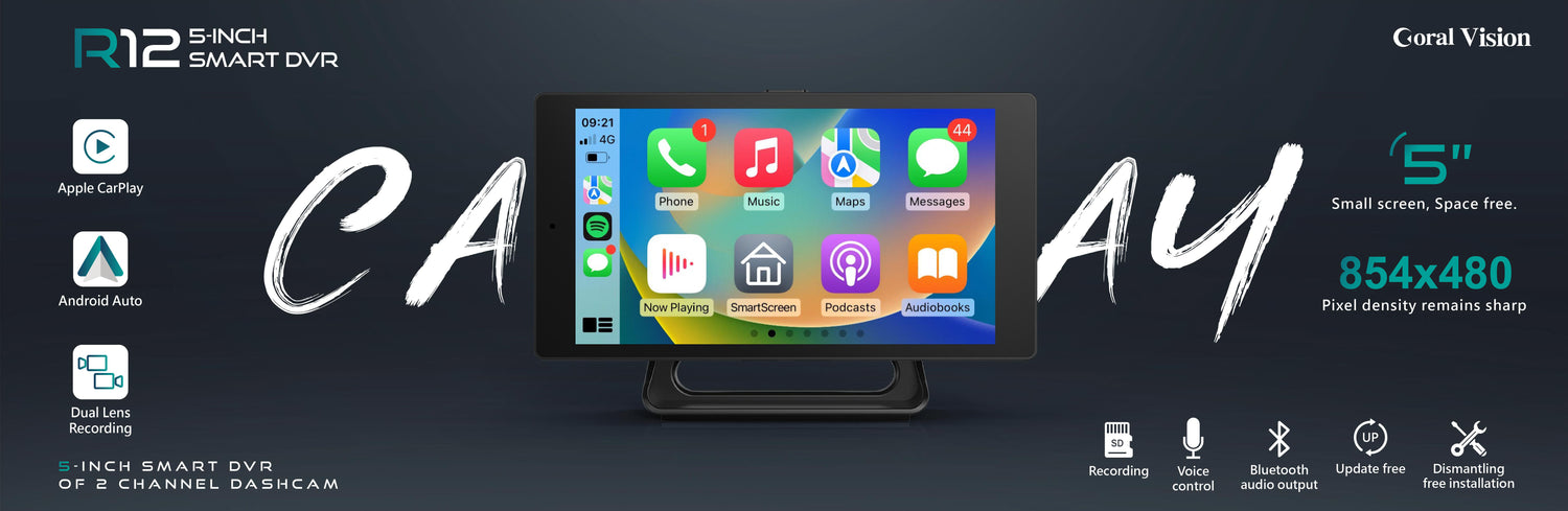 R12 Dual Lens Dashcam CarPlay Bluetooth audio output 5-inch Driving Recorder with CarPlay Android Auto
