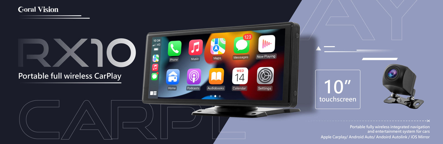 RX10 Portable CarPlay - 10-inch Smart Screen of wireless CarPlay Android Auto Navigation Infotainment